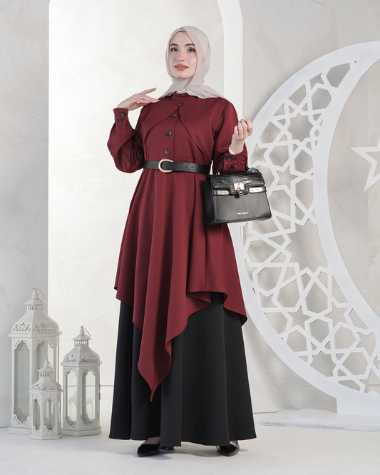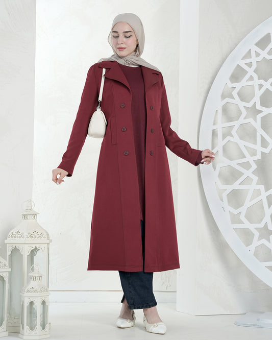 Two-Piece Long Coat Set – Refined Modest Elegance:10700