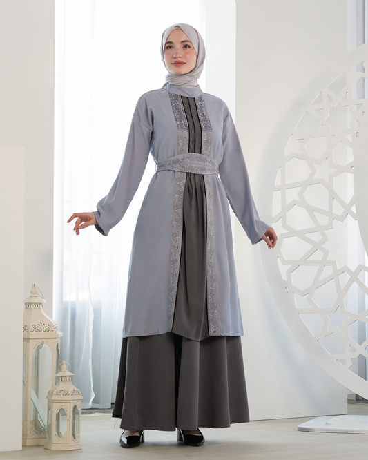 Elegant Embroidered Abaya with Waist Belt:7590