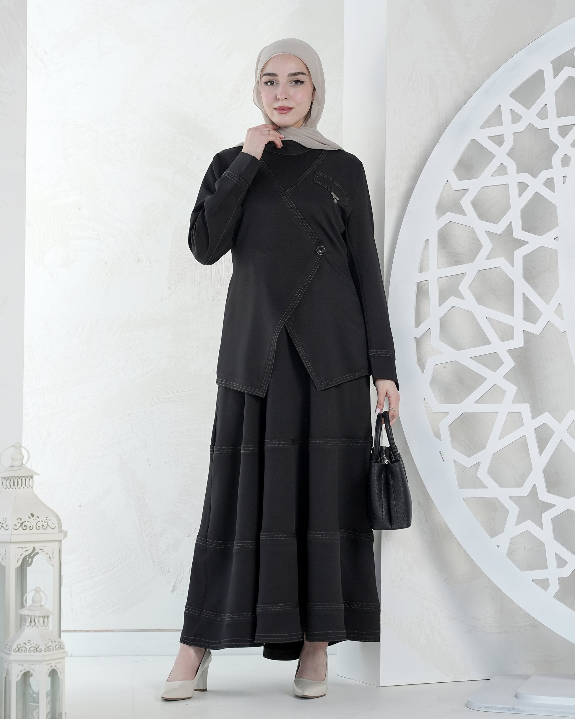 Choose elegance and comfort with this luxurious two-piece skirt set, featuring a modest and modern design perfect for all occasions and celebrations