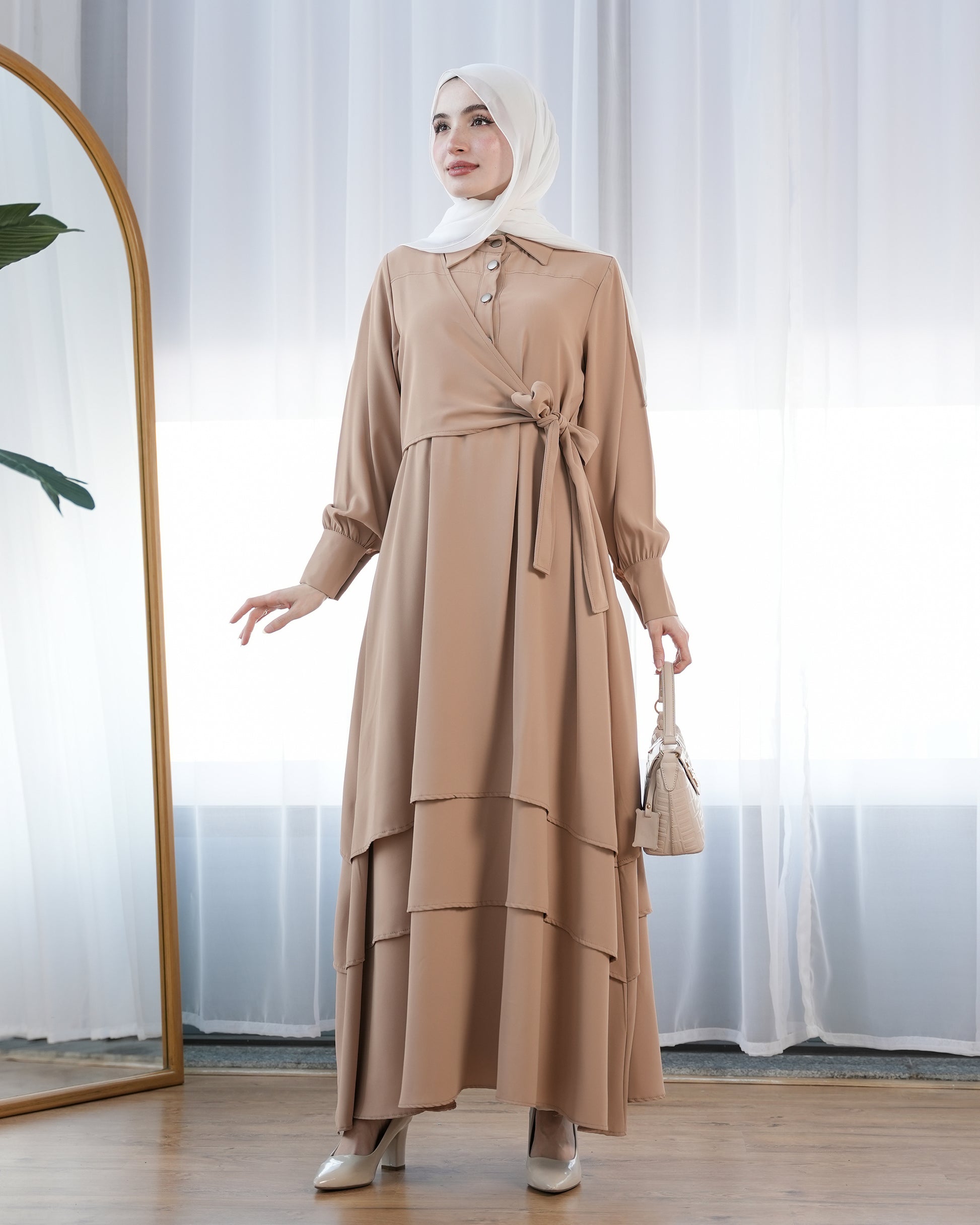 Elegant Modest Set with Waist Tie Detail:9150