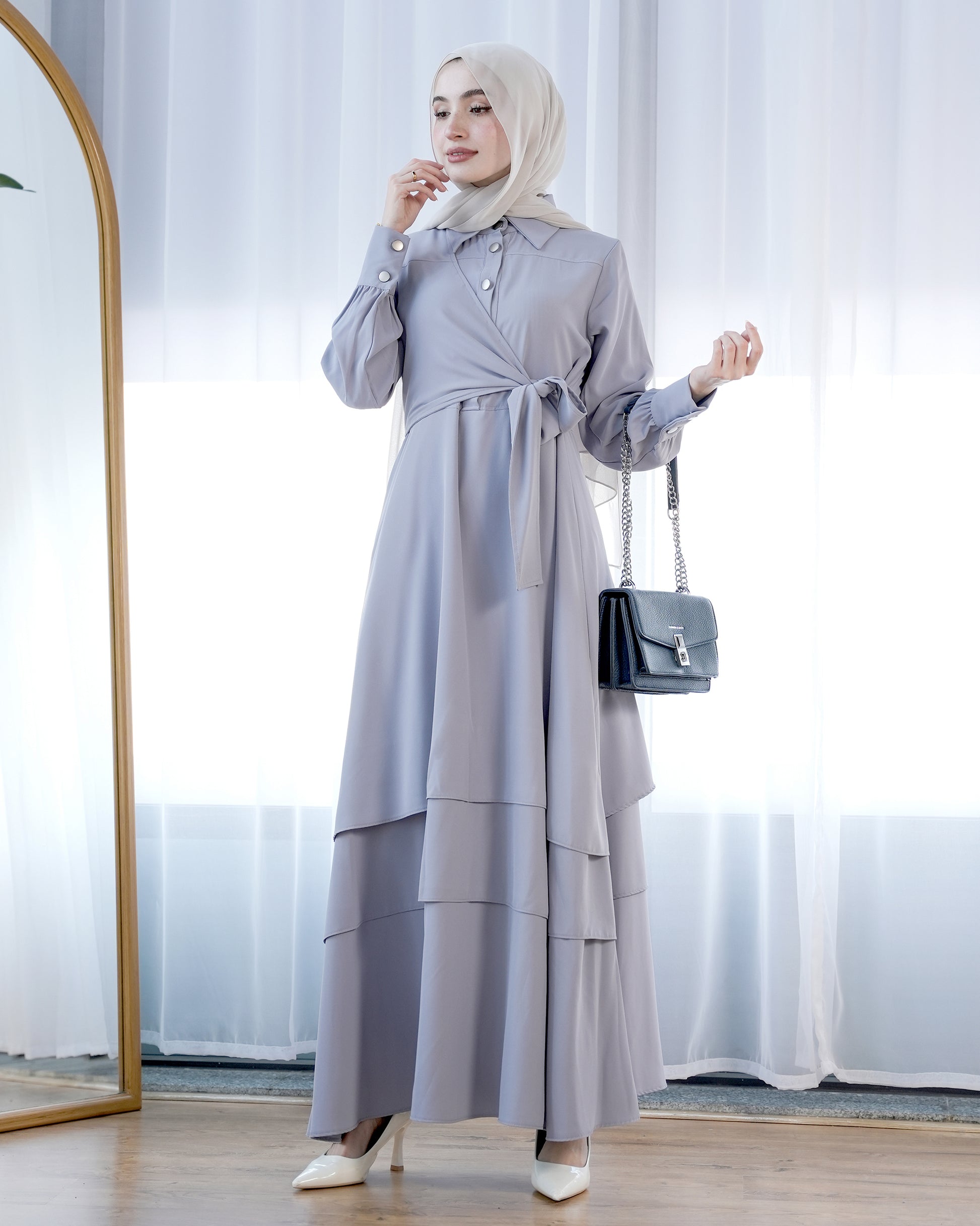Elegant Modest Wrap Dress with Waist Tie:9300